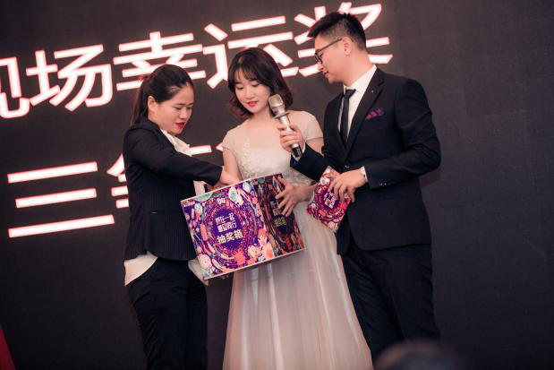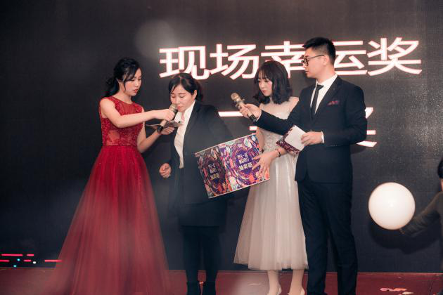晚宴開始后以一首“光年之外”帶起激情歡愉的節奏,客戶們觥籌交錯,交流經驗,分享一年來的碩果累累。音樂、美食加美酒,構成了一幅盛大的宴會畫卷。晚宴精彩不斷,幸運不斷,在勁歌熱舞、中國風雜技變臉中,歡樂大抽獎也將整場晚會推向了高潮。