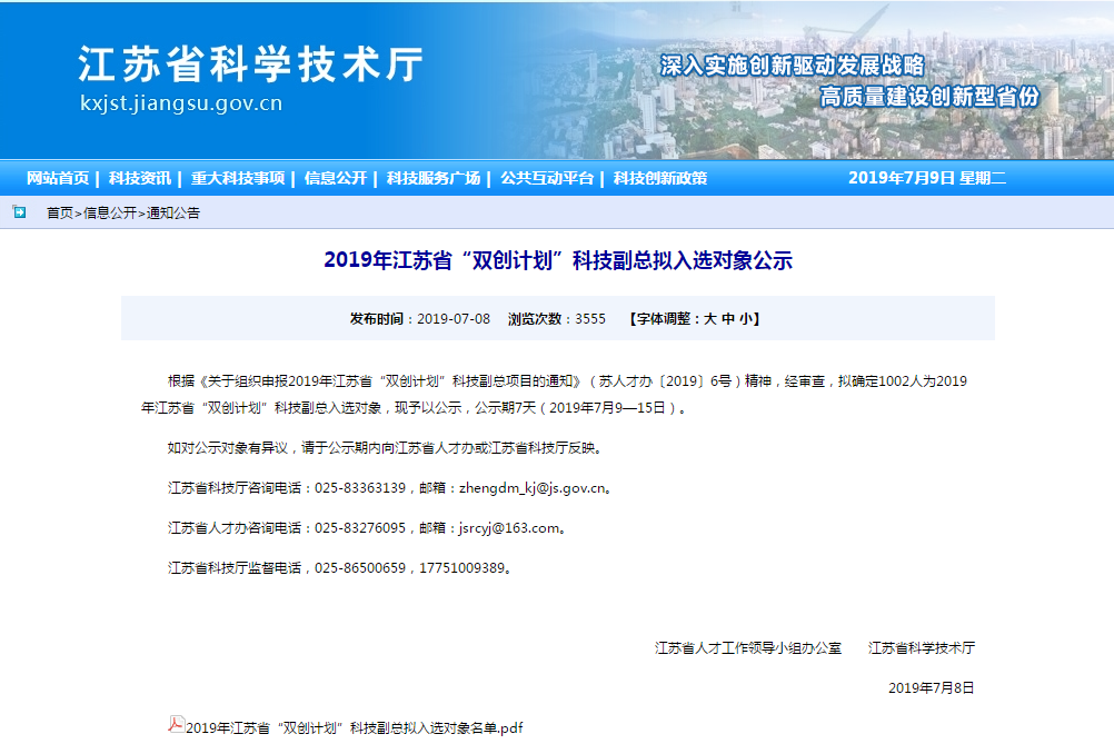 恭喜揚州市青銳網絡科技有限公司成功入選江蘇省“雙創計劃”科技副總項目企業!